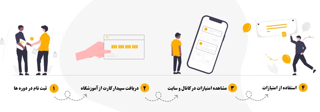 تمامی کارآموزان سپیدار، از لحظه ثبت‌نام به‌صورت خودکار عضو باشگاه مشتریان می‌شوند و با دریافت سپیدار کارت، از تخفیف‌های ویژه دوره‌ها، معرفی به کار رایگان، امتیازات اختصاصی، مسابقات، جوایز و سایر مزایا بهره‌مند خواهند شد، زیرا همراهی شما برای ما ارزشمنده.